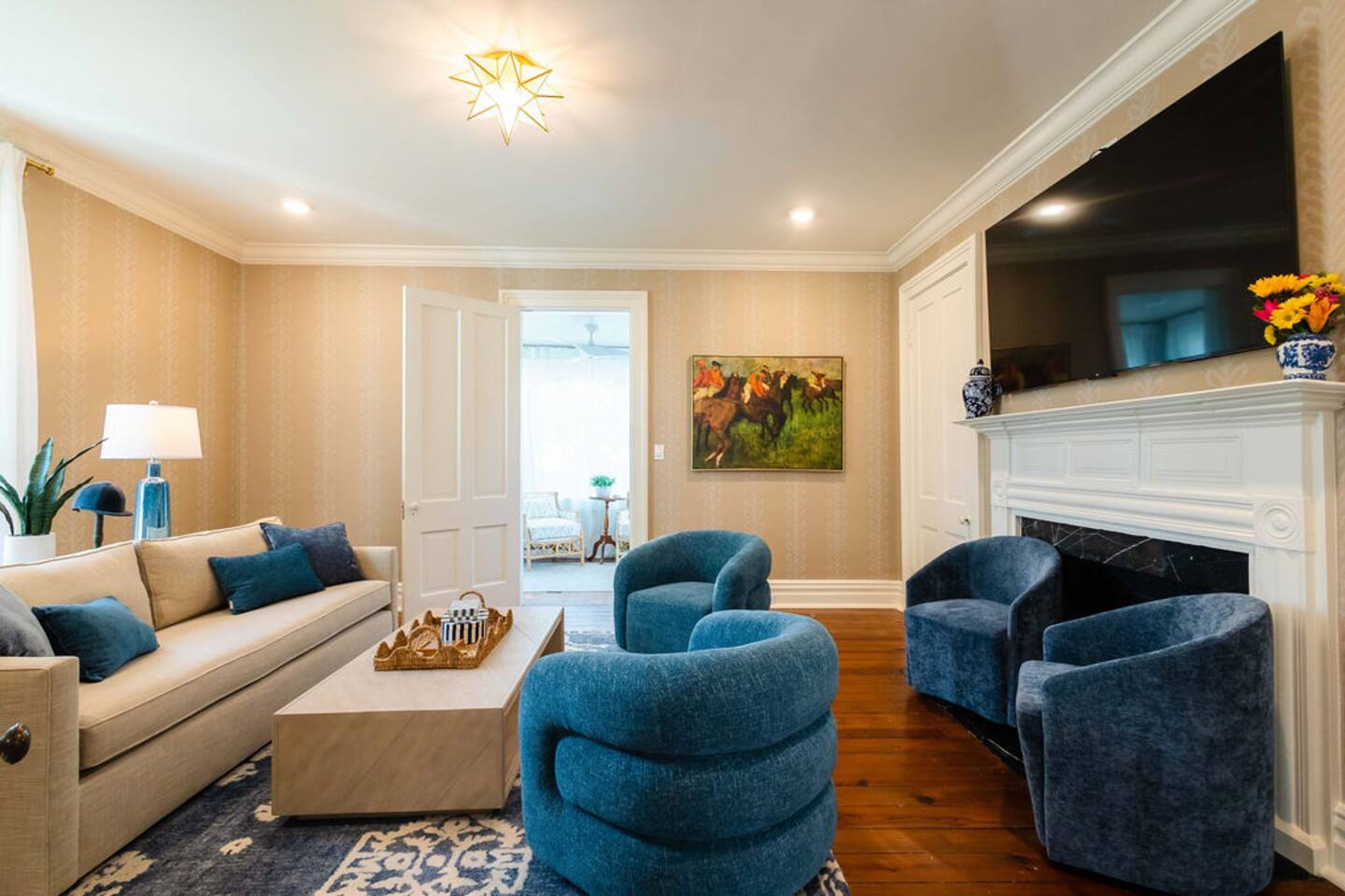 This elegant 6-bedroom estate in Versailles, Kentucky, offers a luxurious retreat just minutes from Keeneland and the Bourbon Trail. With antique furnishings, a gourmet kitchen, and speakeasy poker room, it blends old-world charm with modern comforts. Perfect for those seeking sophistication, relaxation, and a taste of Kentucky’s heritage. Whether you’re visiting for Keeneland, UK, or exploring the Bourbon Trail, this home provides the ideal base for an unforgettable stay.